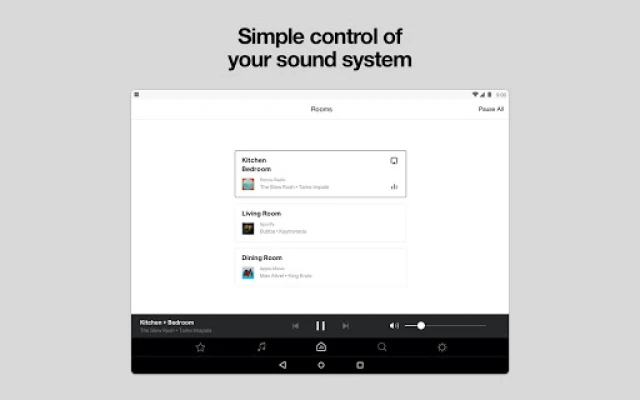Adjust volume levels, group rooms, save favorites, set alarms, and more.