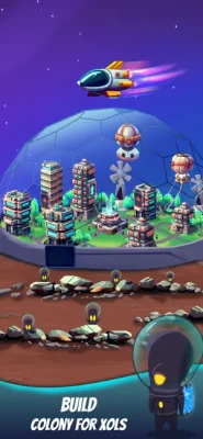 Build energy, oxygen, food farms and upgrade alien levels. Extract, refine ores to research life technology, unlock orbit levels, light speed possibilities in idle games!