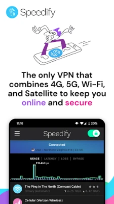 Boost your internet speed with Speedify, the only VPN that keeps you always online by joining multiple internet sources (4G LTE, 5G, Wi-Fi, Starlink, Satellite) into one bonded super-connection for reliable, uninterrupted online experiences.