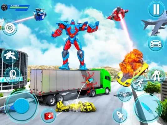 - Robot War Game – Take part in city survival battles & epic mech wars. - Superhero Robot Transformations – Play as a car, drone, spider wheel & more! - Robot Shooting Combat – Unleash powerful attacks & defeat enemies. - Mech War Missions – Conquer futuristic battle zones. - Smooth Controls & HD Graphics – Enjoy an immersive experience!