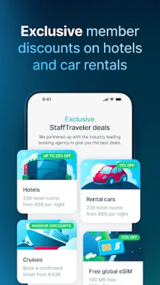 • Unlock exclusive hotel deals and rental car offers