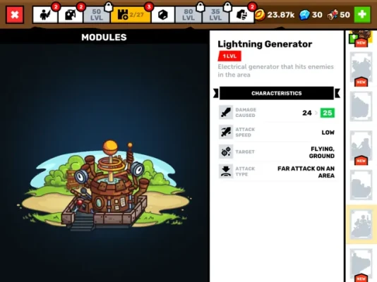 You have several different biomes (floors) to defend simultaneously, hire fighters for defense, to build towers, turrets, traps and various modules for reliable protection. Use their abilities and skills, and create your own tactics to successfully push back the enemy's army.