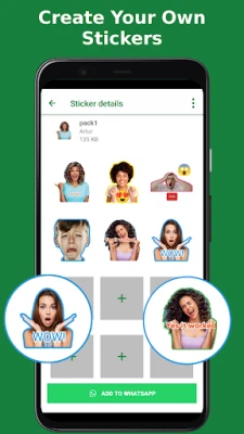 Design amazing stickers yourselves using this free WhatsApp sticker maker app.Creating your stickers is easy with our sticker app - select an image, add decorations or text, save it and add it to WhatsApp.