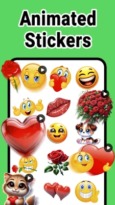 Use animated stickers to make chats more dynamic. You’ll find stickers for categories like love stickers, greetings, emoji, flowers and fun.