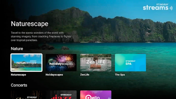 Listen, relax, and immerse yourself in the world of Stingray Streams. It's your free ticket to a universe of music and lifestyle entertainment. Download now and start experiencing our channels today!