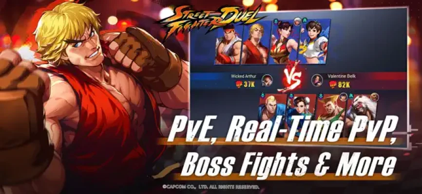 Street Fighter Duel is the first idle RPG game with a strategic take on the fighting franchise. Recruit your own team of over 40 legendary characters, including Ryu, Chun-Li, Cammy, Guile, and more. Level up your characters and equipment to strengthen your team’s power constantly with the idle system - even when you’re away from the game. Save up resources, unlock pulls to obtain new recruits, and take out your enemies.