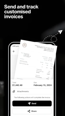 Activate and issue professional, legally-complaint, on-brand invoices from your app in minutes. You can also track the status of any invoices you’ve issued so you’ll always stay on track with pending payments. Our invoicing app feature is very simple. When your customer receives an invoice, they’ll have the option to pay securely online.