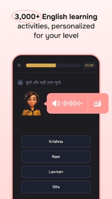 Understanding becomes easier with translations and explanations in your native language. That’s why we offer full support in Hindi, Tamil, Telugu, Bengali, and more! Whether you're starting from scratch or brushing up your skills, our app adapts to your level. This method ensures faster and more effective English learning without confusion.