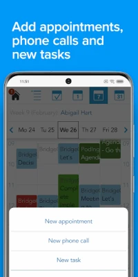 - Access diaries and create new appointments and activities