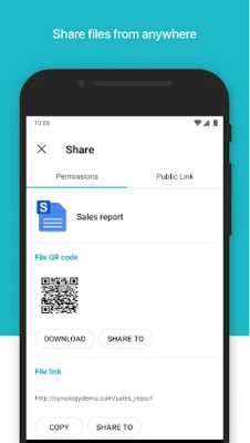Android Drive allows you to easily access and manage files in your Synology Drive on the go. Apart from common file types, such as documents, images, videos and music, you can also open Synology Office document, spreadsheets and slides in the user-friendly viewer provided by Drive. In addition, the features of searching, sharing, moving and applying labels to files are all available on Android Device, which allows users to complete tasks efficiently anytime, anywhere.