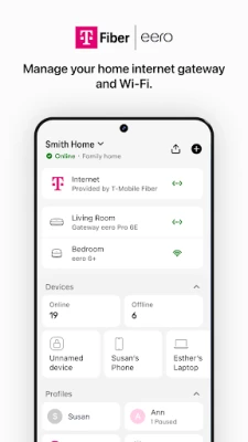 The T-Mobile Fiber: eero app allows you to easily set up and manage the eero devices provided with your T-Mobile Fiber WiFi system (sold separately).