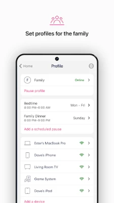 - Schedule or pause internet access to manage screen time