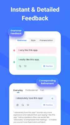 Get real-time corrections and personalized tips during conversations to sharpen your vocabulary, pronunciation, and fluency.