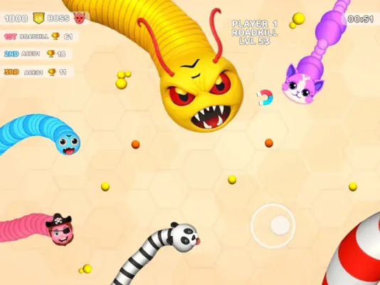 A Little Tangled Worm Clash - Snake Game will be eaten to grow a larger snake in Little Big Snakes in this Snake Game. Eat food and worms to grow your Snake in Fun Snakes Worm Game the Biggest Worm Game. Play perfect Snake Games with unique and unlimited fun of enjoying Worms Zone Games. In this Game try to win matches in Worm Game when your worm is on the tracks of foods and worms and get power up elements to grow fast the Hungry Snake in Worm Game.