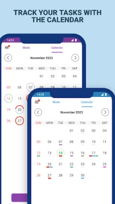 The events/tasks are initially organized by the app in the Week and Calendar tabs, that helps in viewing and planning your Task Agenda.