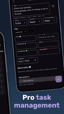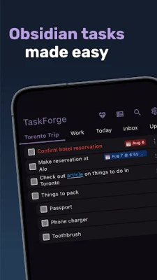 TaskForge is a powerful task management app for Obsidian users that functions as a specialized file manager for your Markdown task documents. It provides comprehensive access to your Obsidian vaults and task files stored anywhere on your device.