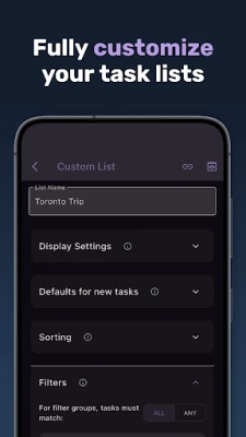 - Advanced filtering, custom lists, and powerful task organization