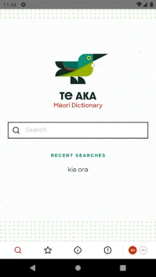 Te Aka is a Māori language dictionary that is easy to use by searching for Māori or English words. It includes the ability to filter search results, and to save definitions to a Favourites list. There are currently over 24,000 Māori headword entries in the database, which is being added to over time. An offline dictionary has also been included when internet connectivity is not available.