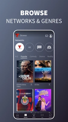 Telemundo is the best app to watch TV series and telenovelas in Spanish from all genres: narco series, romance, comedy, drama, biographical series, Mexican novelas, Colombian novelas, old telenovelas, Turkish dramas.