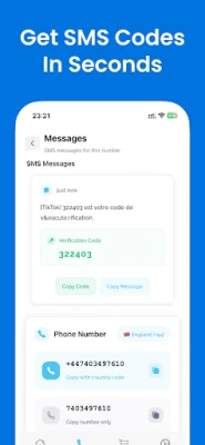 5. Receive SMS verification codes directly in the app - the SMS code appears instantly