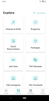 • Receive Club news • Explore classes • Register for programs • Book courts • Check in and track visits • View and edit personal account information • Review charges and make payments