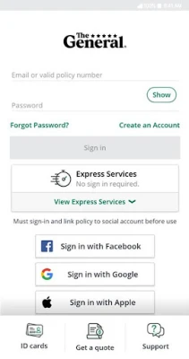 The General’s mobile app is here to help you manage your policy anywhere, at any time. Whether you need to obtain a quote for car insurance, make a payment, view your ID Card(s), or submit a claim; The General’s mobile app makes it easy for you!