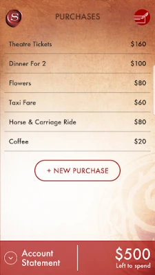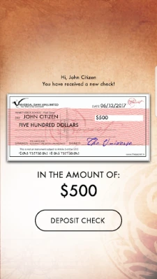 PURCHASES: In this practice, you will change your mindset about money by spending large amounts of money in your imagination. Every day, you will receive virtual checks in escalating amounts from the Bank of the Universe, as first introduced in The Secret book. Using your imagination, you “spend” each check on whatever you want or need, and record these purchases within the app. Currencies are localised for each country and set according to the language and location setting on the phone or tablet.