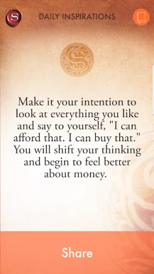 DAILY INSPIRATIONS: When it comes to money, a little bit of inspiration goes a long way towards increasing the money in your life. In this daily practice, you will receive inspiring, financially themed messages drawn from The Secret books in order to help you change the way you think about money. Each inspiration is available to share.