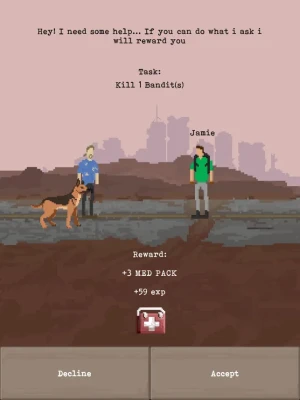 Wander the harsh wasteland as one of the last remaining survivors searching for supplies and battling any unwanted visitors in this Fallout inspired pocket based post-apocalyptic RPG survival game.