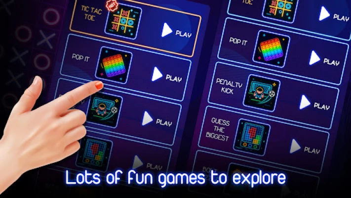 ✅ Collection of 1v1 Mini Games for 1 2 Players: Besides our main game is the Classic Tic Tac Toe Glow game. There are many fun and relaxing game for 1 2 Players like: Chess; Tile Dom; Block Puzzle; Ping Pong; Screw Pin; Bowling etc. From puzzles to classic arcade-style challenges, you'll find hours of entertainment. Enjoy a variety of fun, offline games with XO Tic Tac Toe: 1v1 Mini Game Hub!