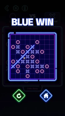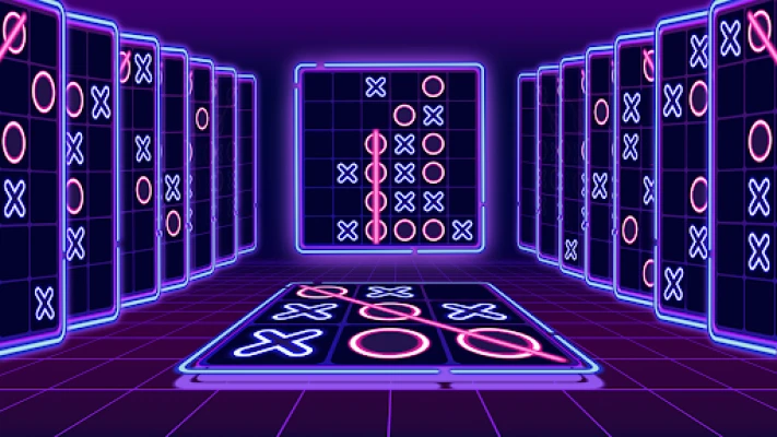 ⭐ Vibrant neon visuals bring a modern twist to this classic tic tac toe strategy game and two player.
