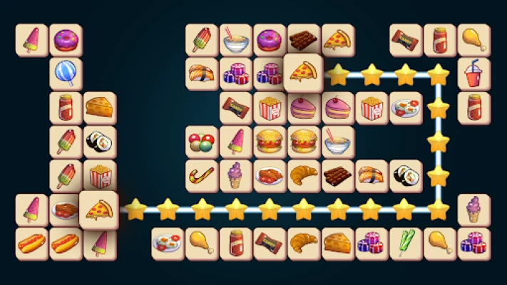 - Connect 2 Same food Tiles in maximum 3 straight lines to clear them.