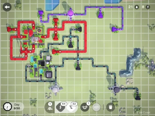 Tiny Connections is a puzzle game that challenges players to create networks connecting houses with infrastructure in tight spaces. In this engaging game, your mission is to make sure each home gets essential services like power and water, all while balancing efficiency and community wellbeing.
