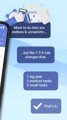 • view the built-in info page to read about the core concept (1-3-5 todo list rule) and get tips to optimize your daily checklist