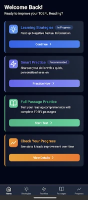 TOEFL Tutor Reading is designed to replace boring textbooks and help you build the skills you need to improve in the reading comprehension section of the TOEFL exam.