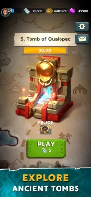 Travel through the golden, arch-shaped doors of the treacherous underground tombs, scattered across hazardous mountain caves, flourishing jungles and lush waterfalls.