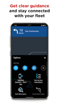 - Unlimited navigation via the license from partner apps like WEBFLEET Work App
