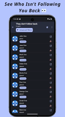 ✅ Track, Filter and Follow user's Followers or Followings: Expand your network by following another user’s audience with one tap.