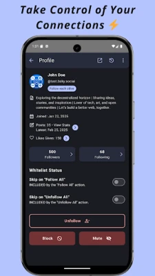 ✅ Profile Actions: Follow, unfollow, block, or unblock users directly from their profile. Add private labels for better organization.