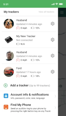 * The app tracks the current location of any Tracki device that was assigned to your account and displays it on a map.