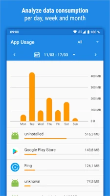 Monitor your data usage in a self-specified period of time. Therefore you can set all your details of your data plan like the starting date of your billing period or your maximal data allowance. You can also choose between weekly, monthly or 30-day billing period lengths. Traffic Monitor measures your data usage in general and by app. So you are always well-informed because Traffic Monitor warns you if you have exceeded your specified data volume. In addition, data usage abroad is shown separately so that you can track your roaming charges easily.