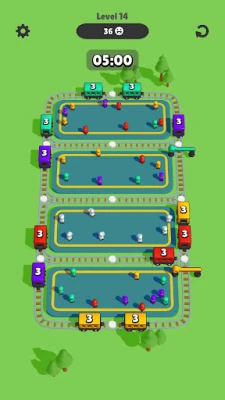 Your goal is to collect all the characters, filled all the trains and avoid obstacles.