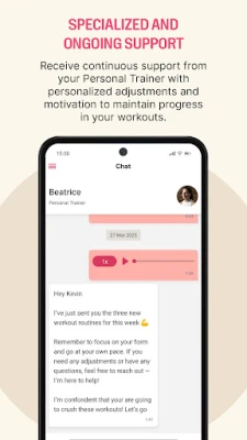 Unlike live classes or one-time consultations, your Personal Trainer is always available to answer questions, share tips, and adjust your routine via text, audio, or video messages—all within the Trainiac app. This ensures you stay motivated and on track.