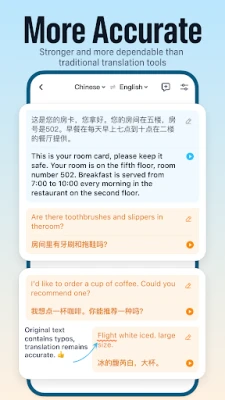 In the current version of TransGull, we've implemented conversational translation, real-time interpretation, and video translation. This allows you to effortlessly communicate with others anytime through the TransGull app. Additionally, you can upload photos during conversations for context-based translations, making interactions even smoother.