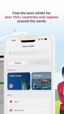 1๏ธโฃ Choose your destination โ Pick a country or a regional plan.