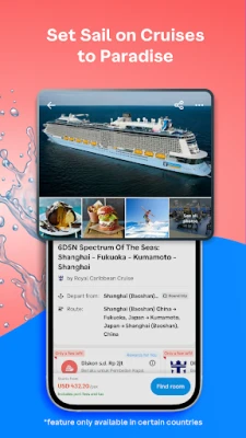 Looking for something different? Book the latest cruise packages with Traveloka. Set sail on international routes and get access to exclusive travel deals that combine air tickets and cruise benefits in one booking.