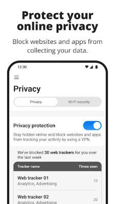 · Anti-tracking and Privacy Controls: Prevents unwanted tracking on mobile devices and notifies you if you are in an unsafe Wi-Fi environment.
