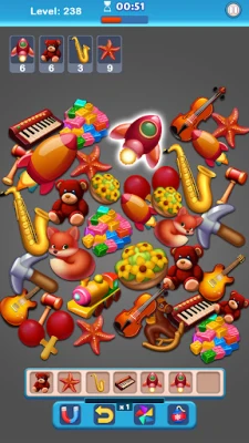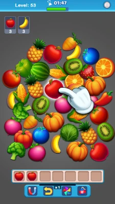 How to Play? • Remember, you’re racing against time! Each level has a set time limit. • During this time, aim to collect similar objects on the tiles located at the bottom of the gameplay screen. • Keep in mind: there are only 7 tiles available. You'll fail the level if you fill them up without making any triple matches. • Your goal is strategically using the tile spaces, creating triple matches, and collecting the required number and type of objects to complete the level within the time limit.