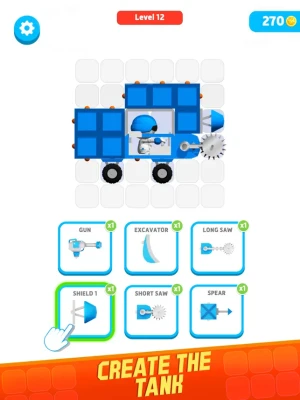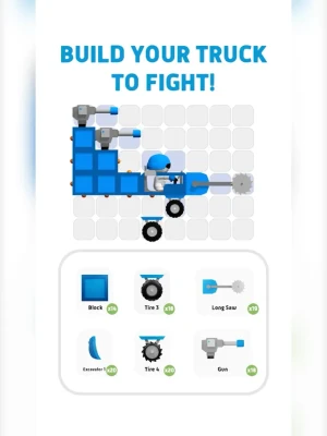 - Various modules to build your robot truck: blocks, wheels and tracks, fire gun, shield, saws, etc.