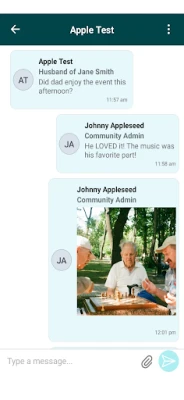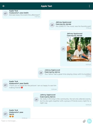 FAMILY COMMUNICATION Your community can easily communicate with family by sending messages and sharing photos. Families enjoy seeing what their loved ones are up to!
